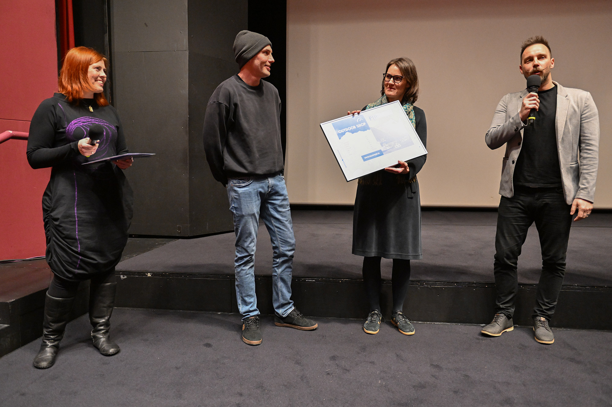 Sorežiserka Mojca Volkar Trobevšek, tudi scenaristka, producentka in organizatorka snemanja, je povedala, kakšen izziv je bilo usklajevati vse te vloge v času nastajanja filma, in da se ji je od srca odvalila triglavska skala, zdaj ko je film na svetlem, in to pred tako številnim občinstvom - hkrati pa se je zahvalila celotni srčni ekipi, kjer je prav vsak prispeval košček v končni filmski mozaik. Režijo sta si delila z Andrejem Podbevškom, ki je pojasnil, kako jim je iz filma, ki bi lahko bil precej dolgočasen dokumentarec, uspelo ustvariti zelo dinamično pripoved in kako so podobo revije prezrcalili v film. Skupaj s snemalcem in direktorjem fotografije Mitjo Legatom sta se Volkar Trobevšek zahvalila s posebnim spominskim darilom - uokvirjenim ozalidom Planinskega vestnika. Gledalcem so se predstavili tudi avtor čudovite filmske glasbe Simon Skalar, avtorica izvirnih animacij Ana Lucija Čuk in asistent na terenu Tine Trobevšek.